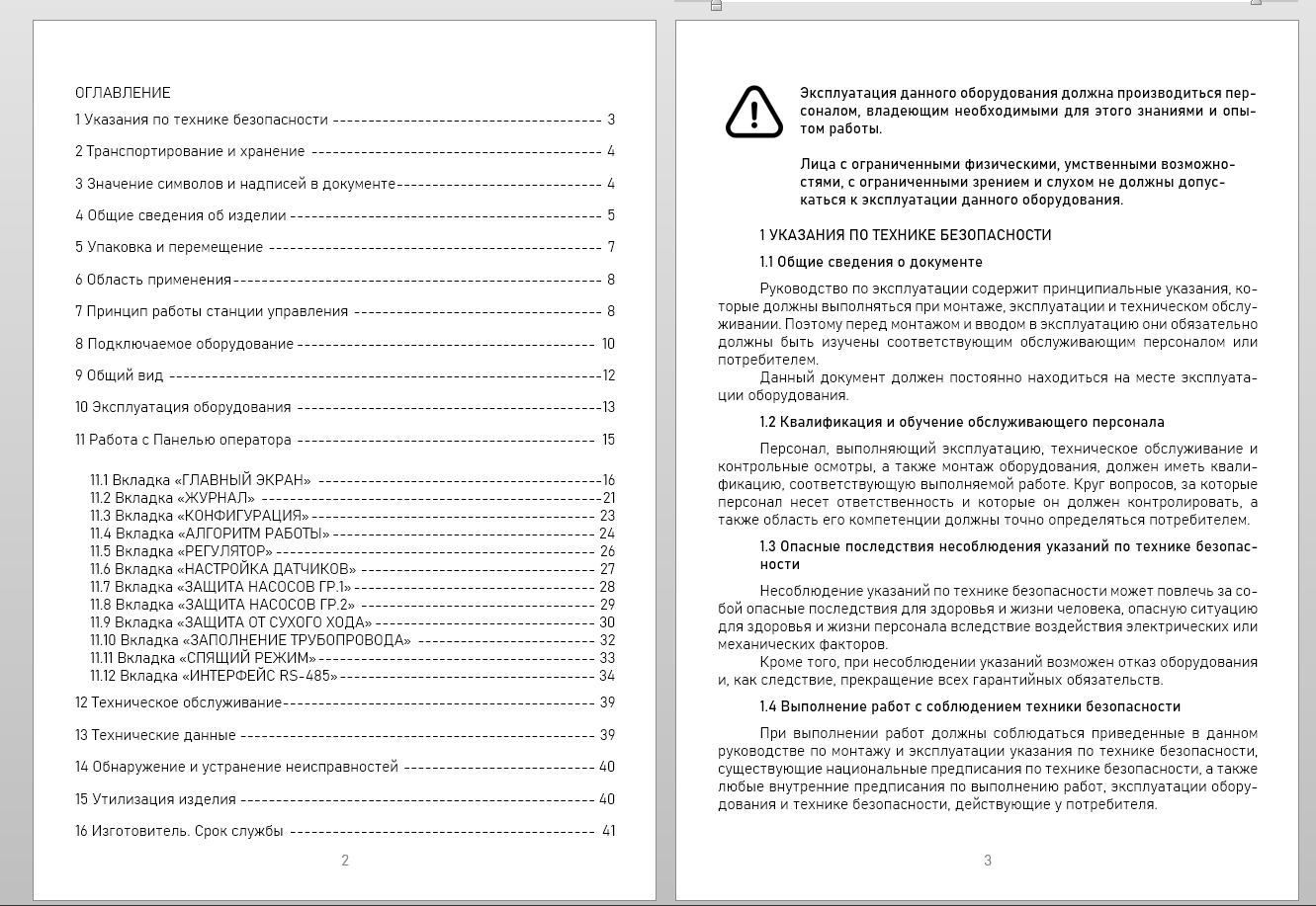 Полный комплект сопроводительной документации. Удобные и понятные инструкции и руководства.